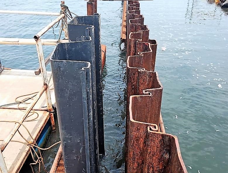 Due to the high stiffness and bending strength of steel, a steel sheet pile with a 7mm thick wall can be used for this type of project (provided there is no aggressive environment that will result in excessive corrosion). The approximate weight of such a sheet pile is less than 80 kilos per square meter.