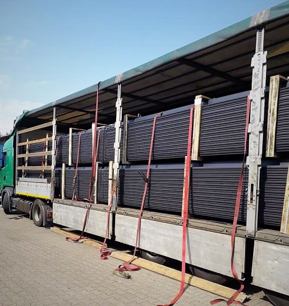 Let us return here to the example one assuming the construction of a tight wall, which would require 12 000 square meters of sheet piles to be completed. We know that a single transport unit can carry 1 200 square meters of vinyl sheet piles (21 tons). This means that ten such transport units will be needed to deliver the entire required quantity.