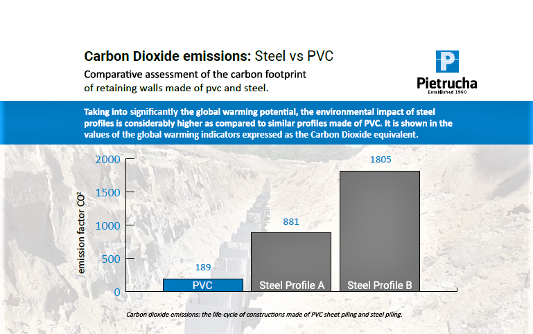 PVC, i.e. the material used to manufacture vinyl sheet piles, is about five times lighter than steel. As a result, more square meters of vinyl sheet piles may be loaded using a single transport unit. That is why, the transport of profiles from the factory to the construction site allows for measurable savings. In addition, the impact on the environment is also lower since less fuel is used and less exhaust fumes are emitted to the air.