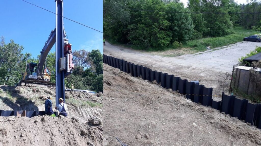 In late February, when the works carried out at the flood embankment were advanced, the war in the Ukraine started with its direct and indirect consequences impacting many aspects of global economy and a many industry sectors, with the steel market as one of them. The supply collapse resulted in severe shortages in the availability of material and steel products. The completion of the works within the contracted deadline has become a big question mark and so was the safety of the inhabitants of Cracow with the flood risk season approaching. Following a series of consultations carried out by the investor, the chief designer and the contractor, the parties decided to replace the steel sheet piles with their vinyl alternatives.