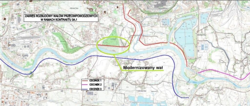 The flood embankments of the Vistula river in the eastern part of Krakow required reconstruction to ensure adequate flood protection. Their technical condition was so bad that in the event of a flood, water seepage through the embankment could lead to a hydraulic rupture and, consequently, permanent damage to the embankment. Failure to intervene properly could result in a major disaster.