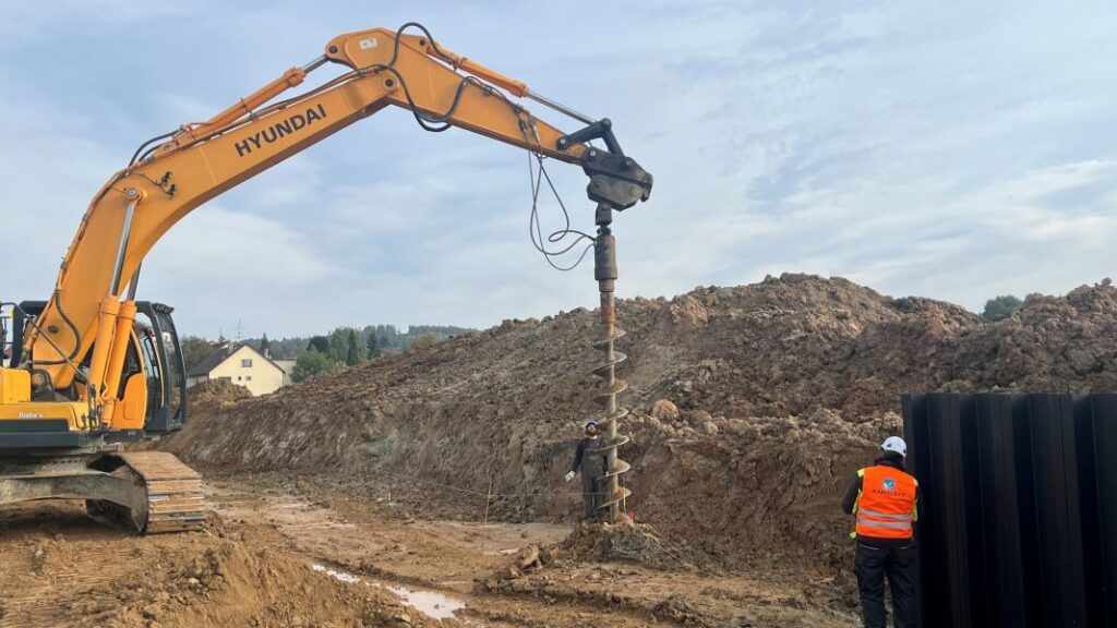 Cohesive soils of low plasticity pose a major challenge for the installation of both steel sheet piles and vinyl sheet piles. This is mainly due to their very high unit weight and the presence of fine particles, which makes them less susceptible to deformation, also due to the cohesion force. When introducing a “foreign body” such as a sheet pile into a very stiff or hard soil, we will not experience the effect of the particles of the soil moving to make room for it. The easiest way to solve this problem is definitely the technique of pre-drilling, which consists in using a auger drill in the spot where the sheet pile would later be driven. The pre-drilling technology is widely recognized when it comes to steel sheet piles, however not everyone knows that it may also be equally successfully applied to install vinyl sheet piles. One must however remember that the above method may change the geotechnical conditions locally, which may affect the behavior of the retaining or a cut-off wall or any structure nearby.