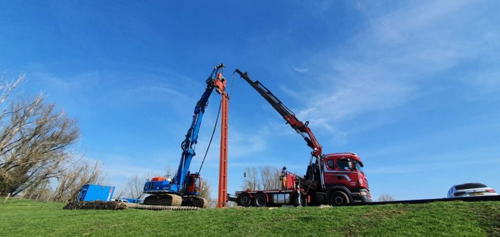 The vast majority of projects for which we provide 8m long vinyl sheet piles require the use of basic equipment, such as a CAT 320 excavator and a vibratory hammer weighing from 0.5T to 1.5T. But what about when the soils are cohesive soils of low plasticity or sands of high compaction, gravel content, and the sheet piles to be installed are longer than 8m? In this first part of our article, we will focus on projects where vinyl sheet piles are driven in cohesive soils and attempt to explain how we overcome the challenges that may arise in such installation environment.