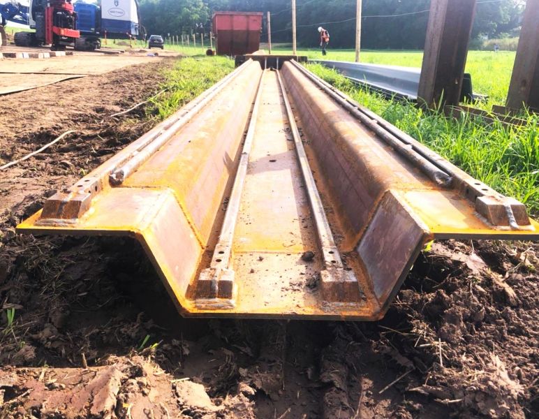 How about when profiles with varying lengths are to be used within one project? Do we need several mandrels for such project? We have come up with a practical solution to enable using the same steel guide for installing profiles with different lengths, i.e. the “Slider” accessory which is temporarily mounted on the guide at the appropriate height to ensure that the upper section of the sheet pile fits against it, preventing upward movement during hammering. This allows for the use of a single steel guide for sheet piles with lengths ranging from 12 meters and under.