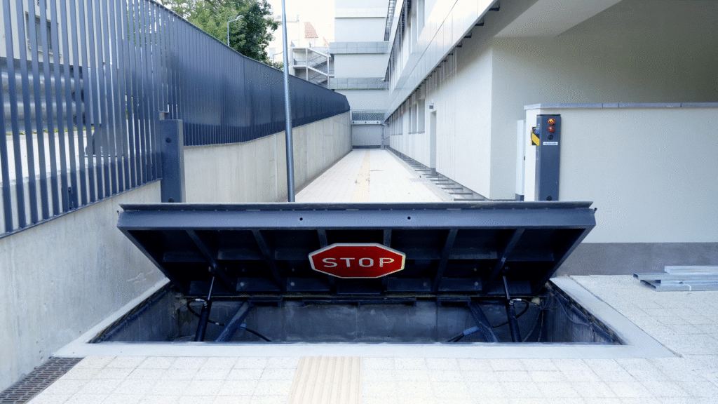 FloodWarden Float and FloodWarden Tech barriers were designed to protect sites and buildings from flooding in particularly critical spots, where ensuring full and undisturbed accessibility both for pedestrian and vehicle traffic.