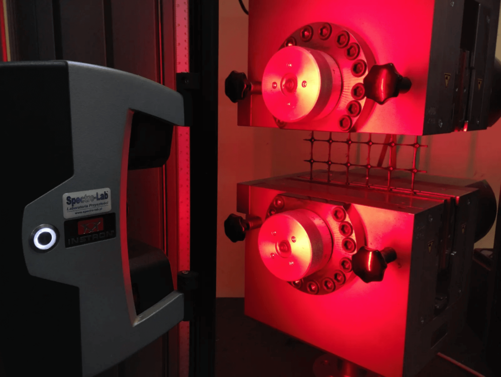 Nasze nowoczesne laboratorium oferuje badania wytrzymałościowe produktów geosyntetycznych, jak również pomiary naprężeń oraz badania na zginanie i udarność profili geotechnicznych.