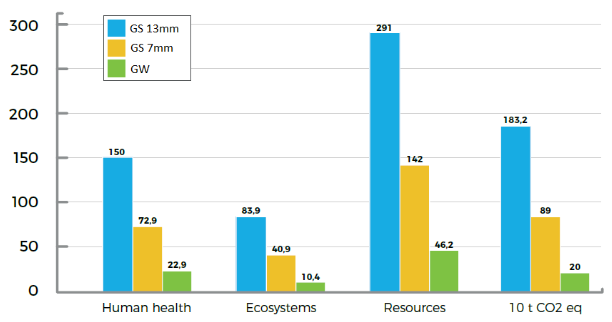 Naukowcy z Zakładu Ekologii Przemysłowej Politechniki Łódzkiej przeprowadzili analizę porównawczą cyklu życia grodzic stalowych i winylowych, a następnie oznaczyli ślad węglowy dla obydwu produktów [2]. Ocena cyklu życia (ang. life cycle assessment – LCA) to jedno z najbardziej zaawansowanych narzędzi zarządzania środowiskowego, opisany w grupie norm ISO 14000, za pomocą którego ocenia się wpływ na środowisko wywierany w toku kolejnych etapów życia danego produktu (od wydobycia zasobów naturalnych potrzebnych do wytworzenia produktu do jego utylizacji). Za jednostkę funkcyjną, dla której wyznacza się wpływ na środowisko, będącą zazwyczaj jednostką wytworzonego produktu lub pełnioną przez niego jednostkową funkcją, w przypadku grodzic przyjęto m2. Typ metody użyty w analizie porównawczej opierał się na szerokim ujęciu, tzw. „od kołyski aż po grób”, gdzie stadium „kołyski” najczęściej obejmuje procesy wydobycia surowców naturalnych, natomiast „grobem” są procesy neutralizowania odpadów.