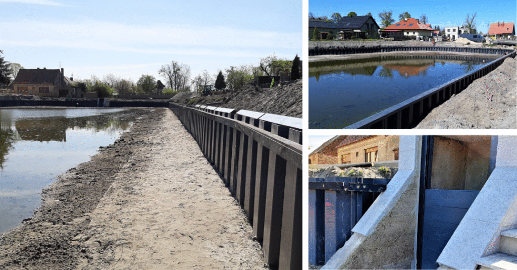 Tam, gdzie ważne było zachowanie przepustowości ciągów komunikacyjnych, ściany wykonane z grodzic winylowych uzupełniono modułowymi barierami przeciwpowodziowymi FloodWarden PRO, montowanymi wyłącznie w okresach zagrożenia.