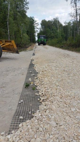 Georuszty PolGrid zostały wykorzystane przy budowie niemal 4 km odcinka drogi leśnej i pożarowej w Nadleśnictwie Grotniki, woj. Łódzkie. Produkt: PolGrid BX 45/45. Ilość: 20000 m2
