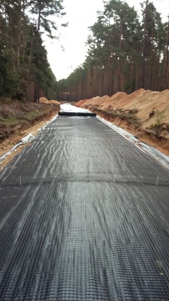 Georuszt PolGrid został wykorzystany w projekcie przebudowy drogi leśnej pożarowej w Leśnictwie Siciny na południu Polski. Produkt: Polgrid BX45/45 – 16 680 m2. Długość: 3,3 km.