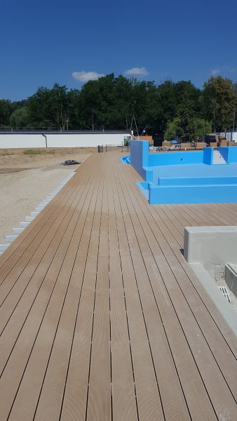 Grodzice winylowe oraz deski kompozytowe TerraDeck zostały wykorzystane przy budowie odkrytego kąpieliska w Nysie.