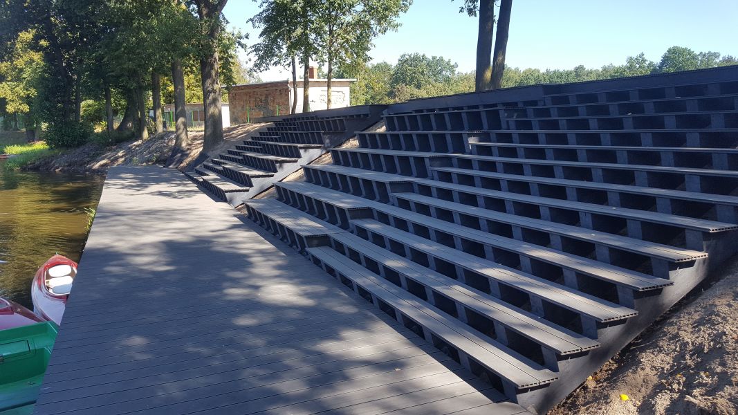 Mieszkańcy malowniczego Brynka w wojewódzctwie śląskim jeszcze tego lata skorzystają z pięknego i trwałego pomostu, do budowy którego wykorzystano 235 m2 deski komorowej w kolorze grafit, wyprodukowanej w zakładzie produkcyjnym Grupy Pietrucha w Ksawerowie pod Łodzią. Jesteśmy przekonani, że nowy pomost z miejscami do siedzenia będzie celem wielu romantycznych spacerów.